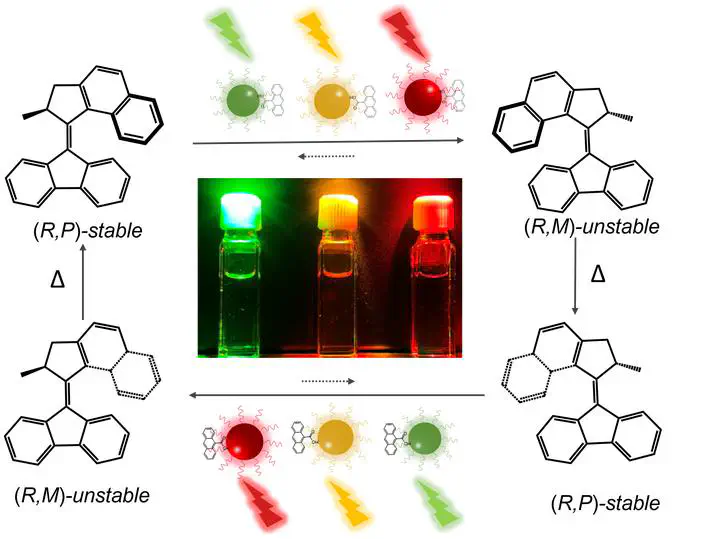 The mechanism of our designs rely on the unique property of QDs, which can efficiently sensitize molecular triplets. Through triplet energy transfers, the rotation of the motor can be efficiently activated using low-energy photons. Our simple yet effective approach to activating molecular motors at any desired visible light region not only expands the capabilities of visible-light-activated molecular systems to operate in a broad wavelength range but also opens numerous opportunities toward controlling dynamic functions while circumventing competing photochemical processes. Based on the above mechanism, we further control helical motion of liquid crystals with molecular motors under visible light, which further paves the way for further developments in molecular machines and smart responsive devices.